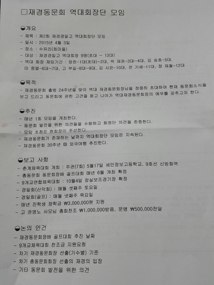 지난 4월 3일(금) 저녁 7시, 강북구 수유역 근처 회마을에서 "재경역대회장단모임"을 가졌습니다.