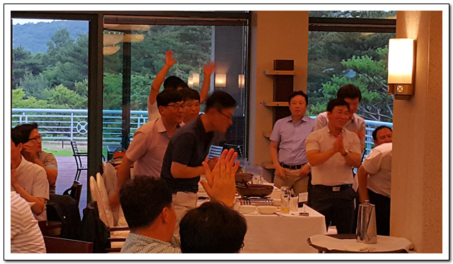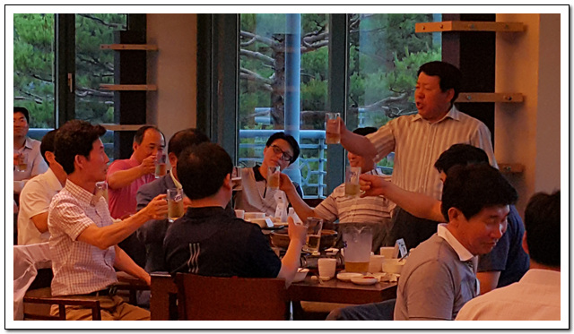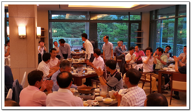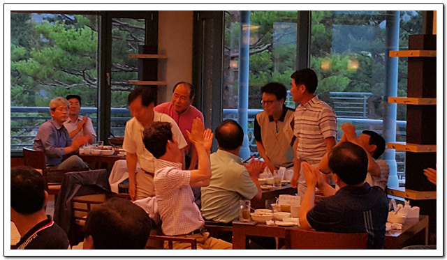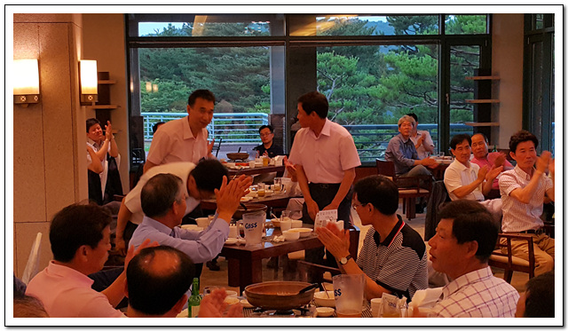 오후 6시경 경기를 마치고 시상 등 행사에 앞서 기수별 자리를 마련하여 저녁 만찬을 하고서 본 행사의 취지와 인사말씀으로 김덕진 동문회장님의 유수같은 말씀의 시간이 있었다.