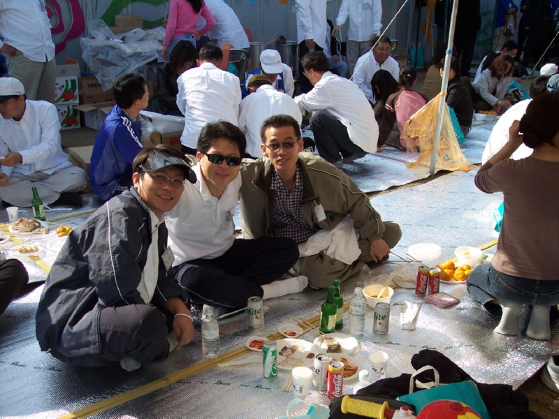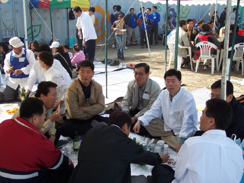 <1회 마중열 회장님, 김승호선배님 등 천막에서 말씀 나누며...>