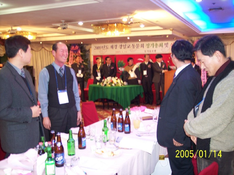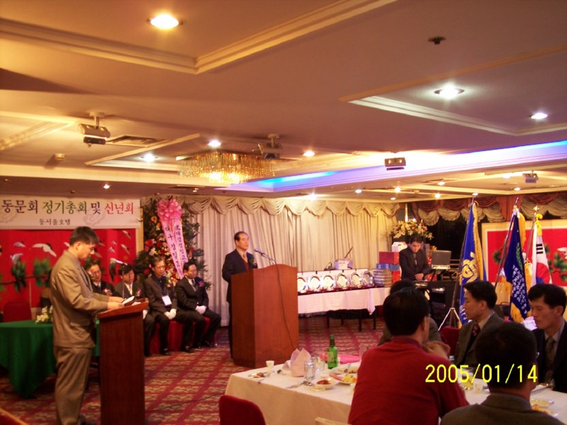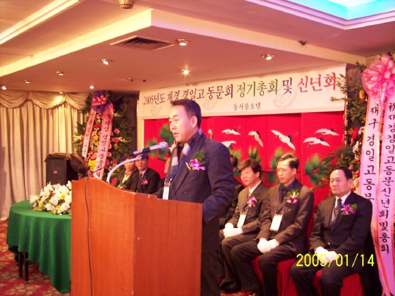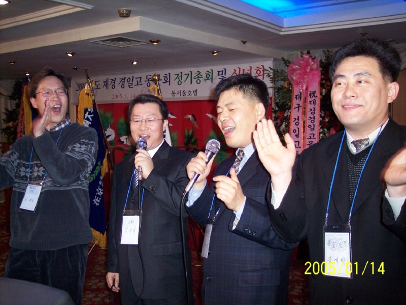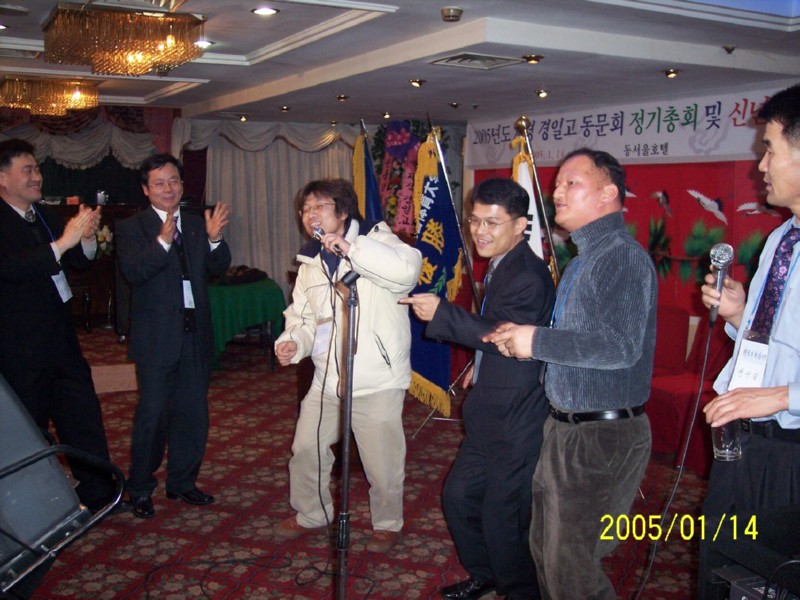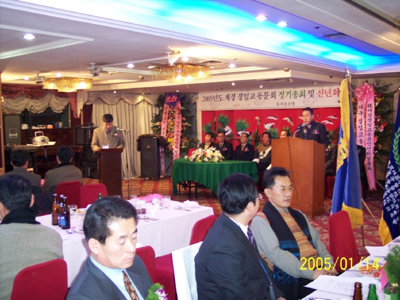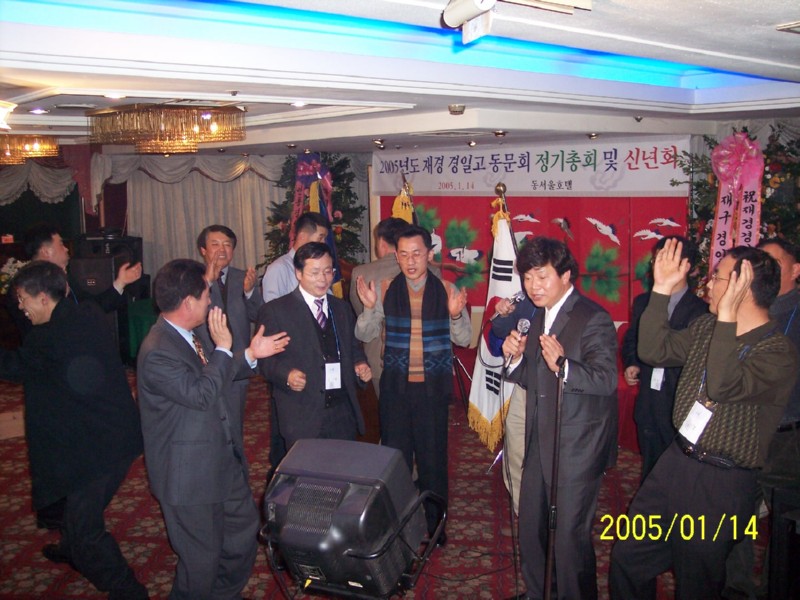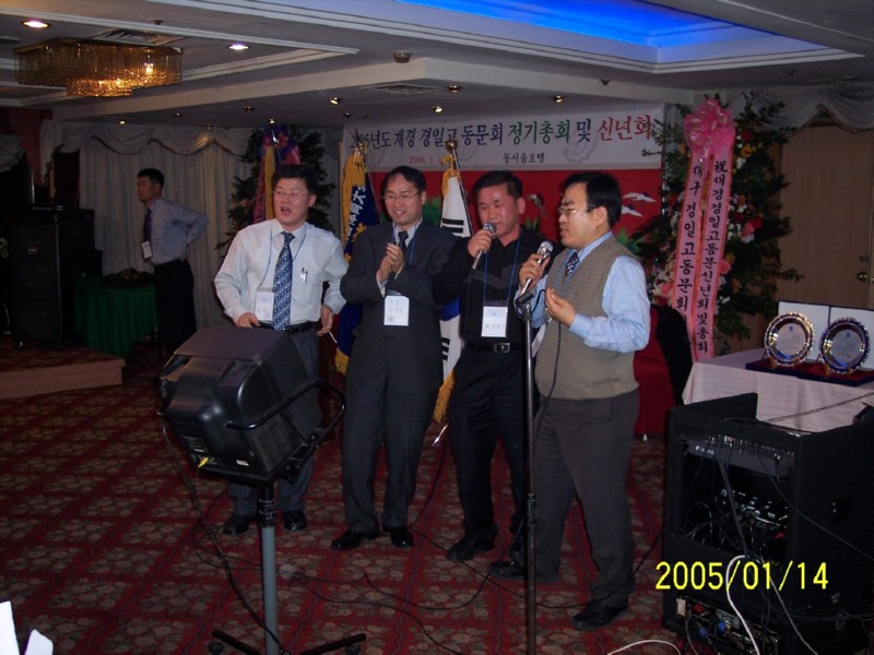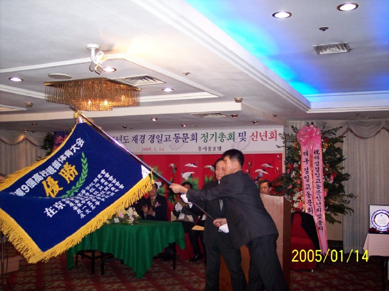 2005년 1월 14일 동서울호텔에서 재경경일고 정기총회 및 신년회를 하였습니다.<2004년 재경9개교 추계체육대회 종합우승기-현수걸 체육부회장 휘날리시며><2회 회장님 노래와 동기들>신년회 여흥시간의 즐거움...그로부터 벌써 1년의 세월이 흐르고...