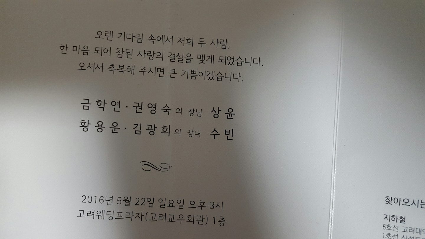 1회 금학연 동ㅁ 장남 상윤씨 결혼식이 아래와 같이 알립니다.
