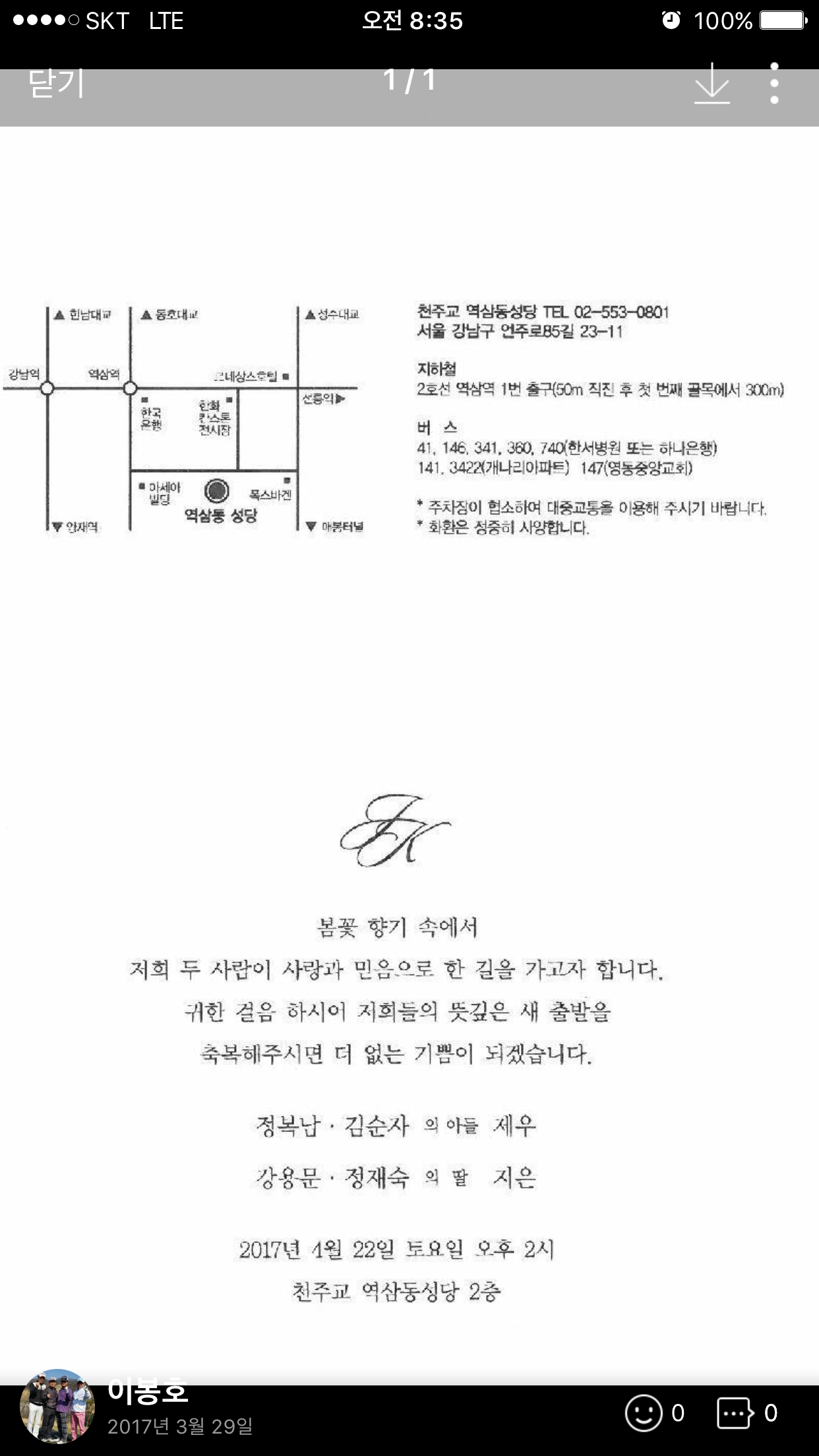 [결혼]4회 강용문 동문님 따님 결혼식 안내