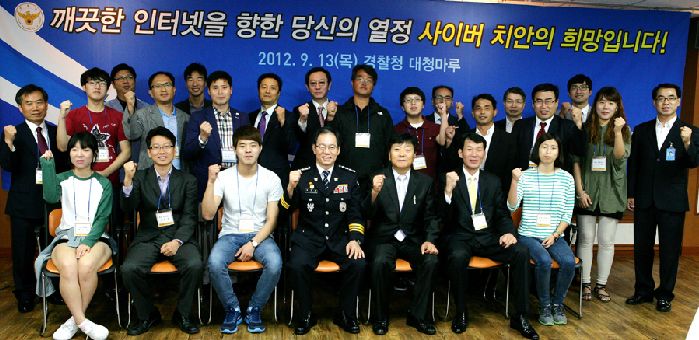 지난 9월 13일 서울 서대문구 미근동 경찰청사 13층 대청마루에서 김기용 경찰청장을 모시고 사이버명예경찰인 ‘누리캅스’ 그간의 노고를 치하하는 간담회를 열었습니다.