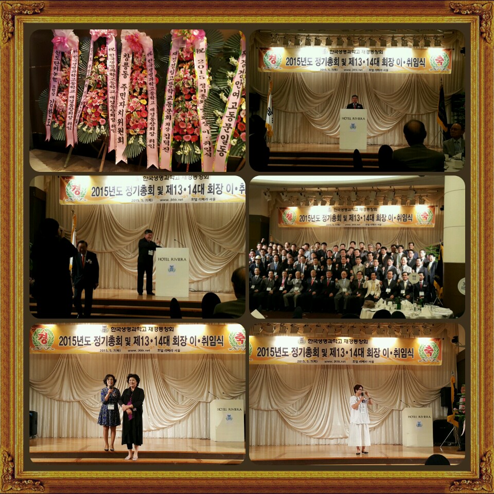 지난주 한국생명과학고 재경동창회는 2015년도 정기총회 및 제13,14대 회장 이·취임식과 동문 화합의 행사를 5월7일(목)저녁7~9:30분까지 강남구 청담동 리베라호텔 몽블랑홀에서 100여명이 참석한 가운데 가졌습니다.