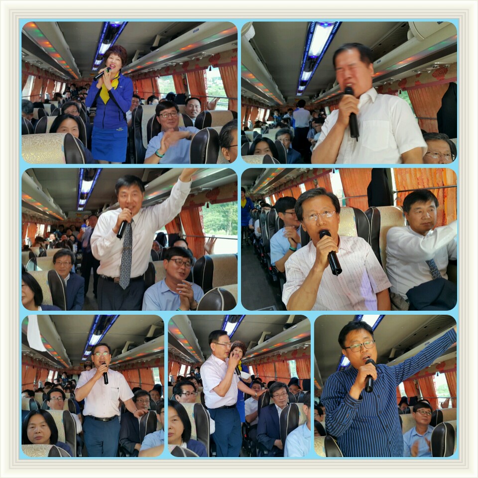 맛있는 뷔페 식사를 축하분위기속에 맛있게 먹고나서, 오후2:30분에 관광버스는 상경의 시동을 걸었으면서 차내에 처음에는 피곤으로 잠을 청하다가 치악휴게소를 지나면서 오신 분들 소개를 하고나서 흥겨운 노래로 여정의 피로를 풀었다. 특히 동문중 김승호 명예회장님의 노래와 권오규선배님의 멋드러진 노래솜씨는 일품이었고, 3회 동기님과 사업체 및 용호산악 여성회원님들의 노래에 모두들 흥겨움이 더했다.