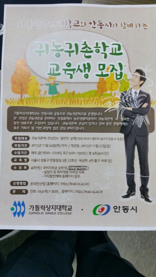 카톨릭 상지대학교와 안동시가 함께하는 "귀농귀촌학교 교육생 모집"이