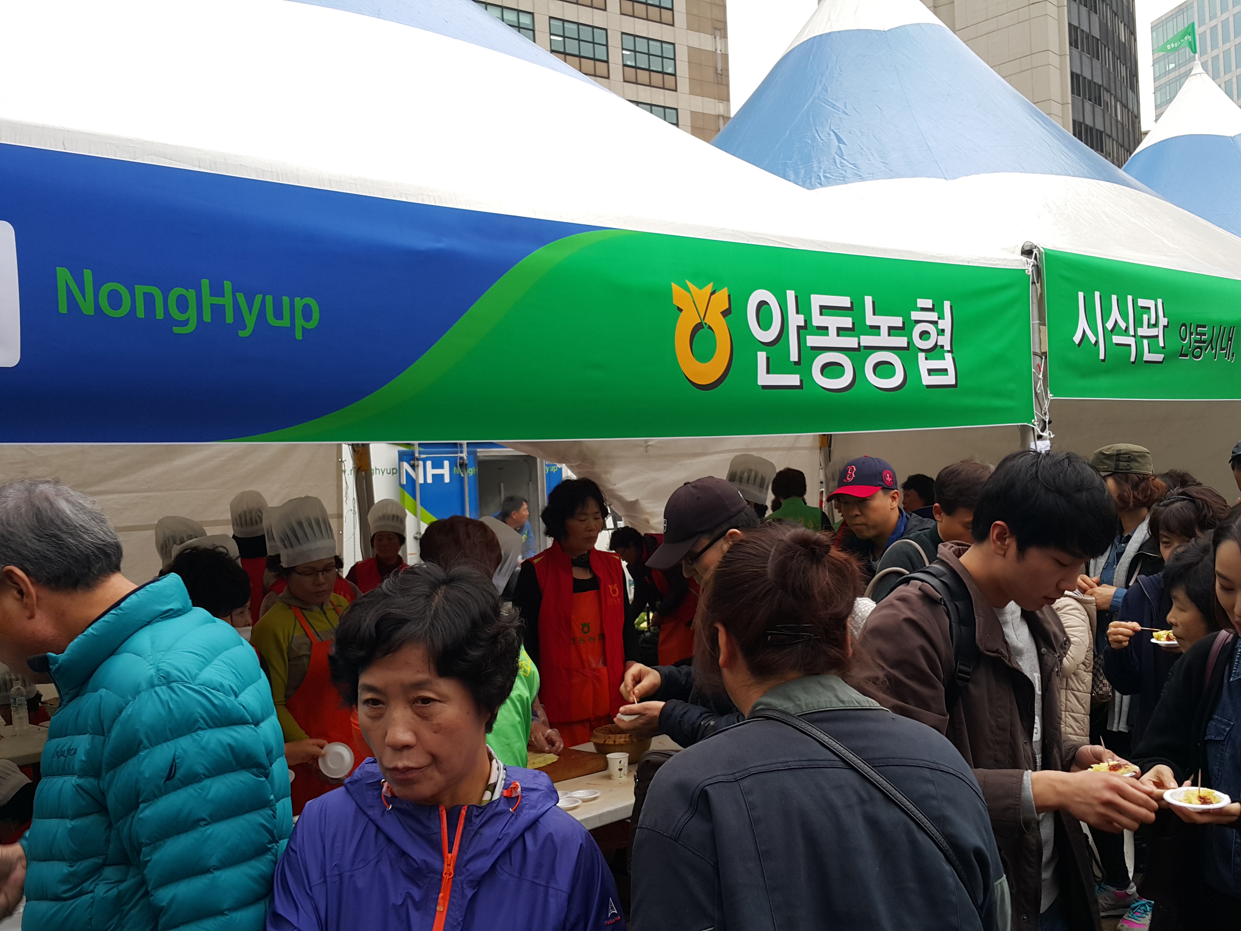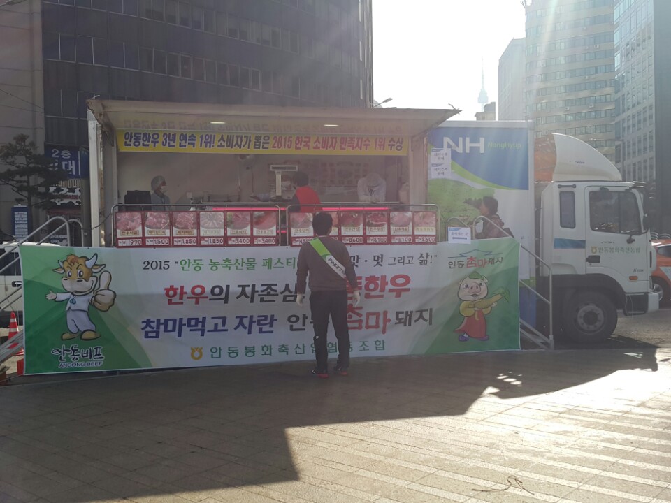 이날 안동시내와 16개 각 읍면단위로 농특산물을 전시와 시식 및 주문받기도 하며 배달주문과 더불어 안동특산물을 서울시민들 홍보가 되도록 처음하는 행사이기에 외국인들까지 합세하여 모여들었다.