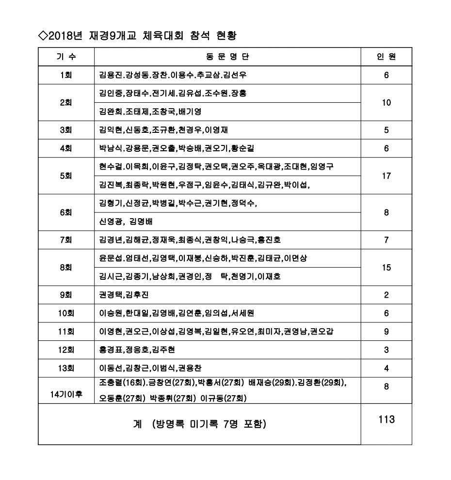 제44차재경9개교체육대회 참석자및찬조내역