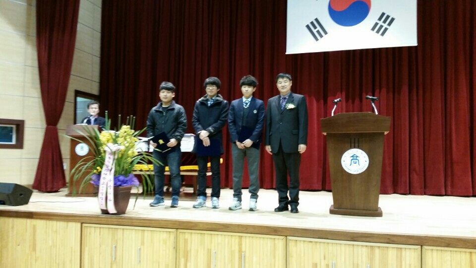 이날 재경 회장님은 3명의 졸업생에게 각 100만원의 장학금 전달식을 하셨습니다.