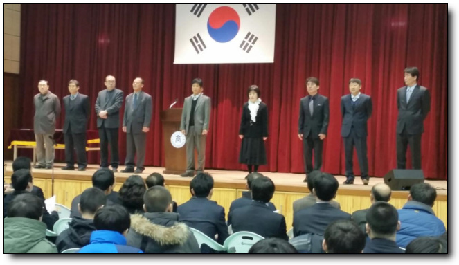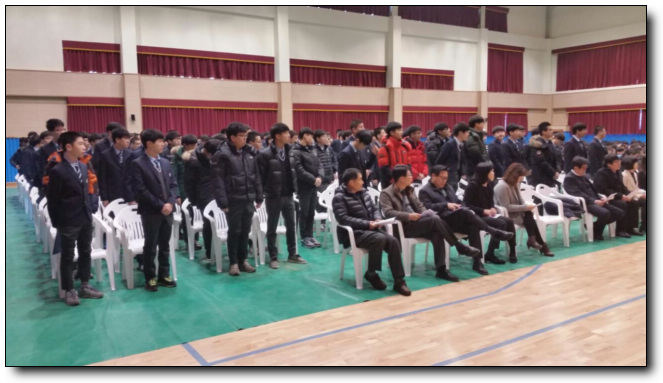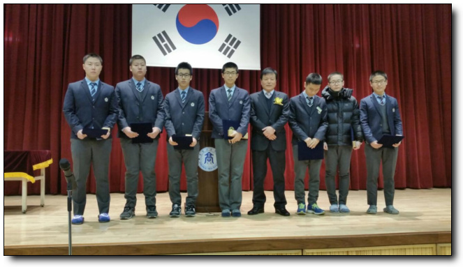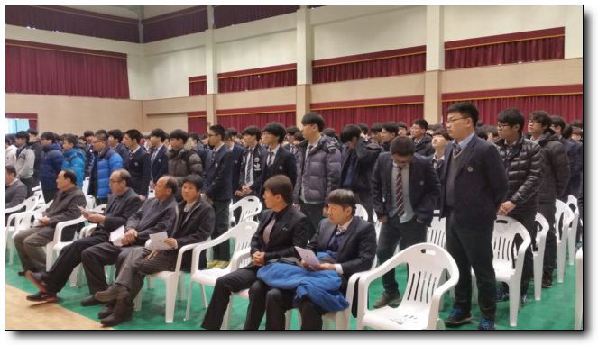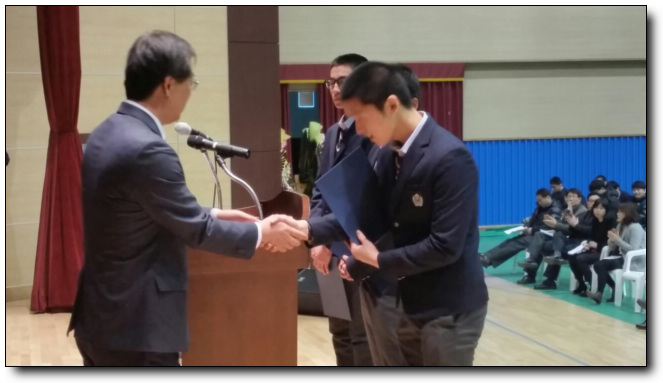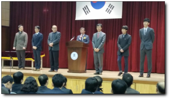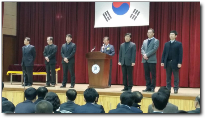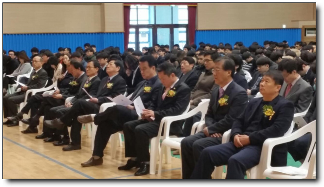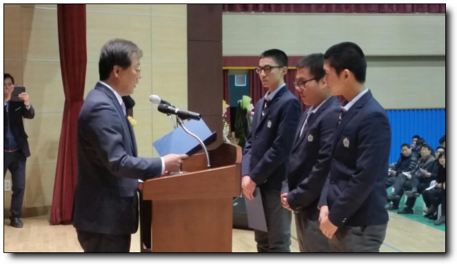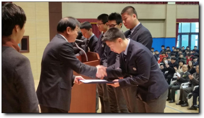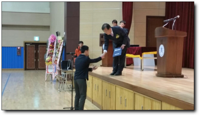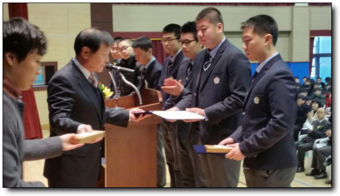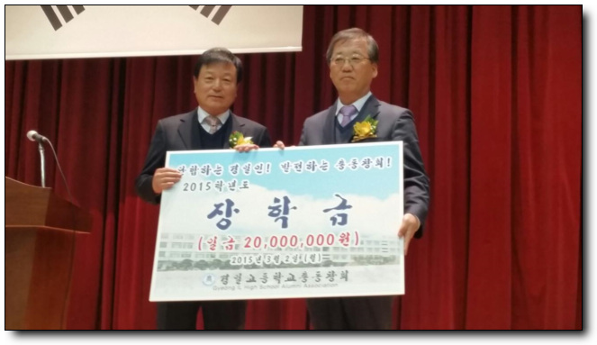 또 총동창회에서는 올해 학교에 장학금으로 2000만원을 지원하기로 약속하는 기증서를 김정균교장선생님께 전달하였고, 총학생회장 부총학생회장 운암관자치회장을 따로 불러 손목시계를 선물하며 학업과 교내생활에 모범이 되어줄 것을 부탁하고 격려하였습니다.