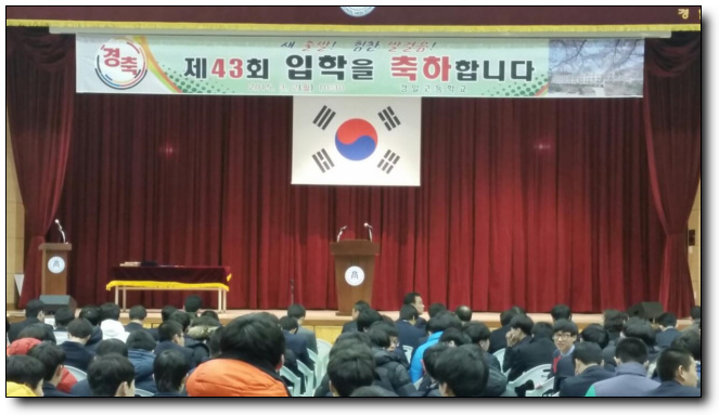오늘 다목적홀 행산관에서 올해 신입생 163명에 대한 입학식이 거행되었습니다. 김정균교장선생님의 입학 허가와 신입생대표의 선서로 입학이 이루어졌고, 재학성적 및 입학성적 우수자에 대하여 교직원 장학금이, 총동창회에서도 장학금과 손목시계를 부상으로 수여하였습니다.