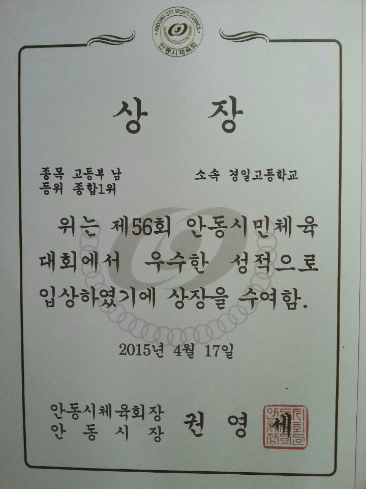 ▶제56회 안동시민체육대회에서 모교가 고등부 종합1위의 성적을 거두었습니다~