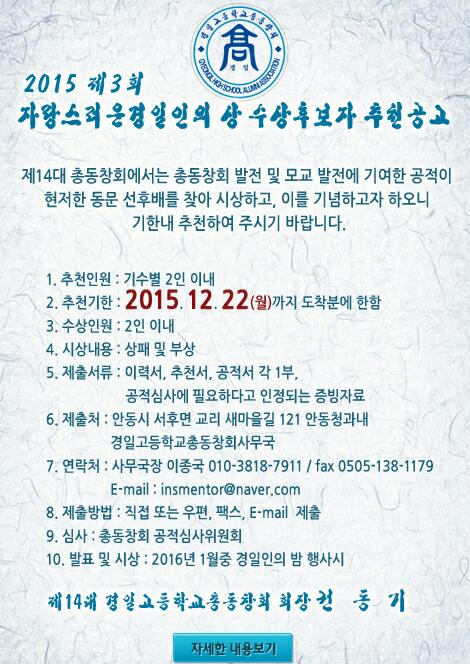 5) 기타 자세한 사항은 경일고등학교총동창회 사무국으로 문의하시기 바랍니다. |