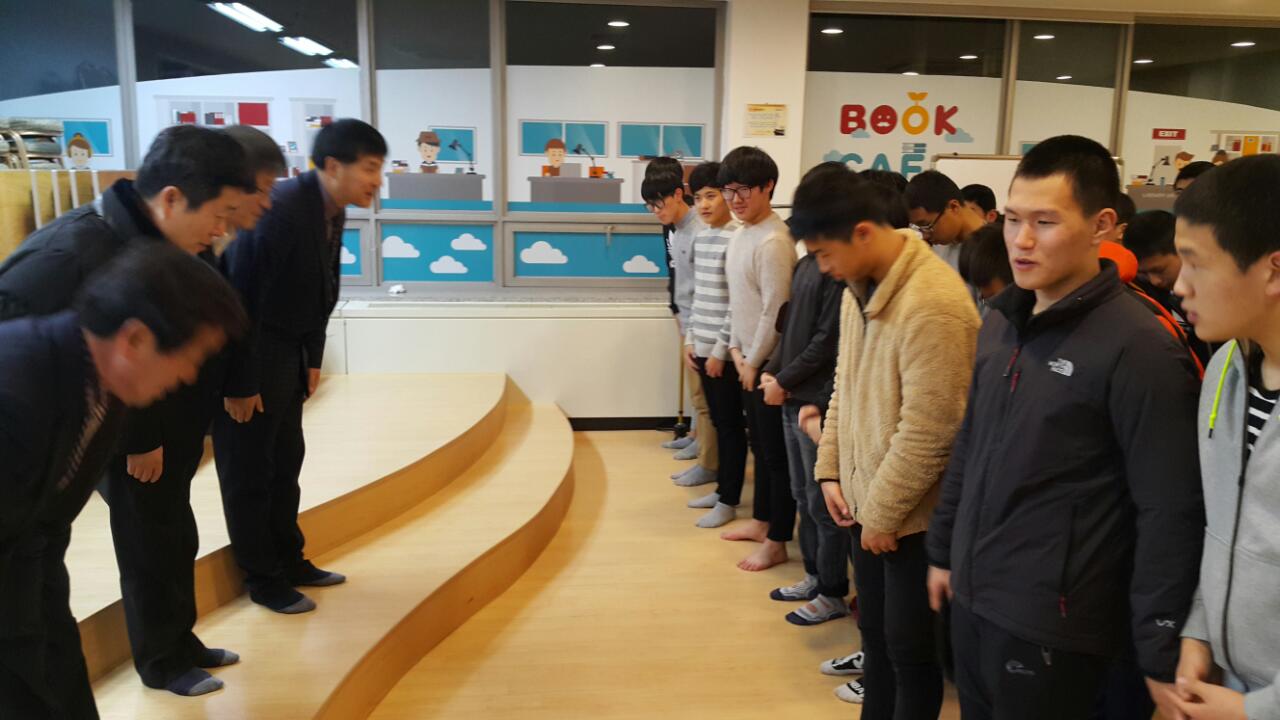 지난 12월 18일 모교 우수학생들이 서울지역 대학교와 문화탐방 (국회.삼성전자 본사 등)을 위해 아침8시 버스로 42명이 상경 (2회 권원일 선생님_운암관 관장) 하였기에 숙소 남산에 있는 유스호스텔에 재경경일고동문 회장님 이하 선배님 (1회 김용진 산악회장님, 2회 김인중 개나리장학위원장님, 4회 박남식 차기 회장 추대님, 전병화 사무총장)이 격려차 상견례를 가졌습니다.