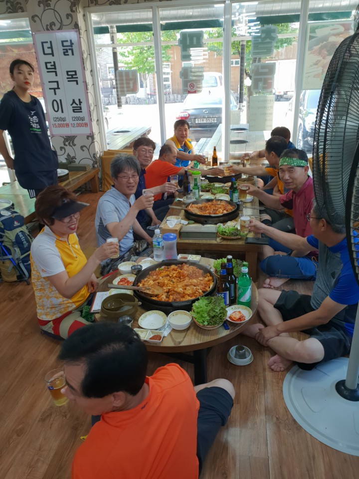 경일산악회는 지난 21일 강촌에 있는 삼악산을 다녀왔습니다. 계획은 등선봉과 청운봉, 용화봉으로 산행계획을 세웠으나, 폭염이 쏟아지는 관계로 용화봉만 다녀왔습니다. 무더운 날씨에도 불구하고 경일산악회는 15명의 회원은 태양열 발전소로 바뀐 춘천의 붕어섬과 북한강을 바라보며 바람 한 점 없는 삼악산을 즐거운(?) 마음으로 산행하였습니다. 폭염에 쌓인 피로는 하산 길 계곡에서 시원한 알탕(?)과 닭갈비로 말끔히 풀었습니다. 참석해주신 회원님들께 다시한번 감사의 말씀드립니다. ▲ 참석자 : 김용진(1), 권오명, 정재철, 김덕진, 정덕교, 김경년(1), 권창익(1) 김해균, 이재붕, 이진우, 조서영, 이승원 등 15명 ▲ 찬조 : 정재철 10만원 김용진, 정덕교, 김경년, 이재붕 각 5만원 권오명, 김덕진, 권창익, 김해균, 조서영 각 2만원 ▲ 지출 : 300,800원 - 입장료 : 20,800원 (1,600원 × 13명) - 식 대 : 280,000원 2018. 7. 24. 경일산악회장 김용진