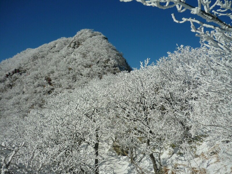 남덕유산 중턱부터 펼쳐진 눈꽃에 감탄사를 연발하며 즐거운 산행을 하였습니다. 또한 정상에는 글로 미처 표현하지 못 할 정도의 상고대가 절정을 이루어져 있었습니다.