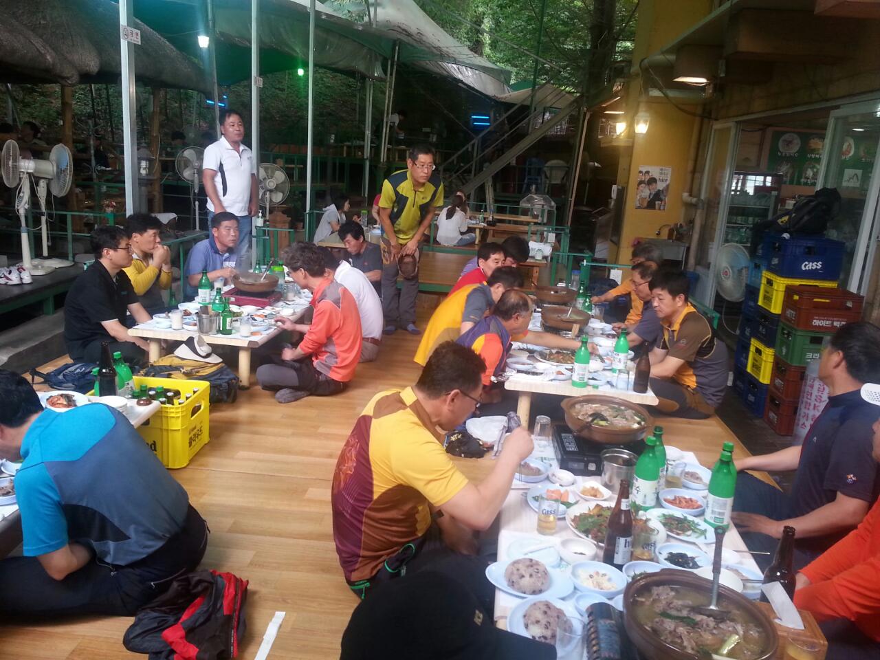 지난 7월 18일 토요일 청계산에서 경일산악회와 경일FC 연합 산행으로 김용진 재경경일산악회장님과 김덕진 재경회장님 등 25명 내외 참석하였다. 정상에서 기념촬영과 다함께 식당에서 식사를 하며 못다한 이야기, 이날 회장님을 비롯한 여러분들이 금일봉으로 격려하며 자주 동호회 연합 산행으로 오리백숙으로 몸보신 하는 등 건강을 챙길 수 있도록 독려하였다.