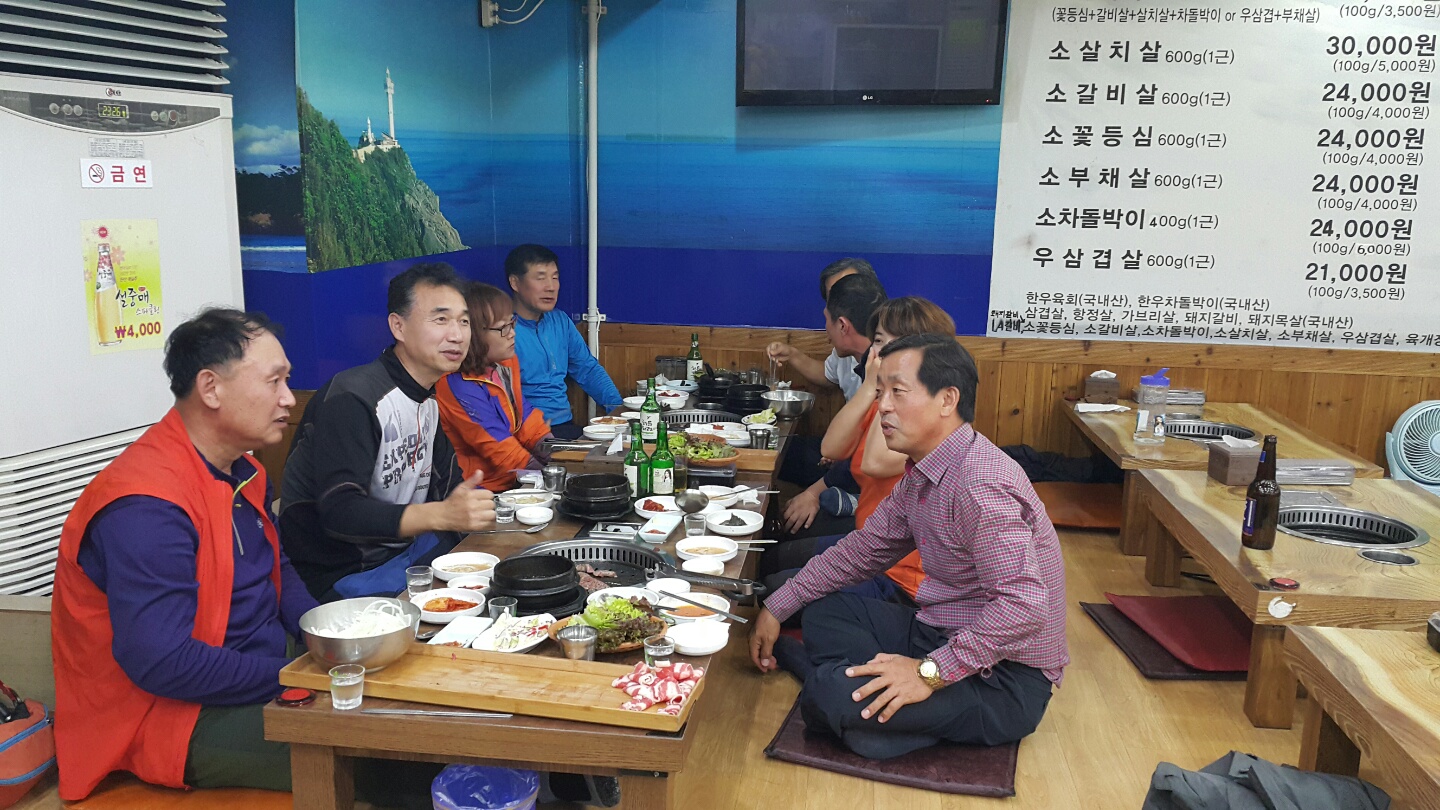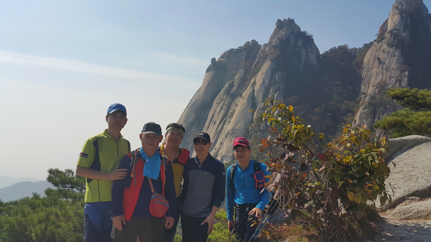 지난 10월 15일(토) 경일산악회는 도봉산을 다녀왔습니다. 단풍도 제법 들었더군요. 도봉산탐방로입구에서 시작하여 Y계곡을 지나 우이동으로 하산하였습니다. 우이동에서 김승호 명예회장님께서 산악회원들을 따뜻이 맞이하여 주셨고, 고깃간에서 소고기도 푸짐하게 사 주셨습니다. 이 자리를 빌어 다시한번 감사의 말씀 드립니다. 또한 9개교 체육대회 준비에도 바쁘시지만, 산악회 식사 자리에 오셔서 격려해주신 박남식 재경회장님 고맙습니다. 11월 산행은 더 많은 회원미들이 오셨으면 좋겠습니다. ● 만찬 협찬 : 김승호 명예회장 ● 참석회원 기념품 전달 : 재경동문회 박남식 회장 ● 참석자 : 이경영, 김덕진, 정덕교, 김해균, 이승원 2016. 10. 17. 경일산악회장 김용진