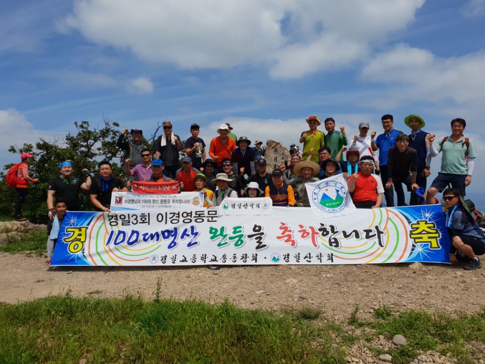 경일산악회가 출범한지 5년이 되는 올해. 정말 뜻 깊은 산행을 지난 18일 구미 금오산에서 실시하였습니다. 이경영 회원의 100대 명산 완등을 축하하기 위해 재경경일산악회 김용진 회장과 회원들을 비롯한, 박이섭 총동문회 회장 및 안동경일산악회 권기창 회장 부부 및 회원 여러분과 권순영 재구미동문회장과 회원 여러분, 그리고 재구미길원여고 동문들께서 참석해주셔 더욱 빛나는 자리였던 것 같습니다. 이 자리를 빌어 감사하다는 말씀 다시 한번 전해드립니다. 경일산악회는 눈비가 휘몰아치거나 폭염 속에서도 이에 굴하지 않고 매월 셋째주 토요일이면 배낭을 꾸려 북한산 등 서울 근교 산행을 하거나 무박 2일도 마다않고 원거리 산행에 참석해주신 회원여러분 너무나 감사드립니다. 이러한 경일 선후배 간의 모든 추억들이 5년 간 차곡 쌓이는 동안, 이경영 회원님은 1년 5개월만에 100대 명산 완등하는 쾌거를 이룩하였습니다. 이날의 축하자리는 정말로 하나된 경일인 그 자체였으며, 감동적인 장면이었습니다. 더욱이 맏딸이 전달해준 꽃바구니와 손편지에 담긴 정성어린 글귀가 가슴을 먹멍하고 눈시울을 붉게한 감동 그 자체였습니다. 100대 명산을 완등하신 이경영 회원에게 다시한번 축하의 말씀 전해드리며, 이를 계기로 경일산악회는 더욱 발전하는 산악회가 되리라 믿어 의심치 않습니다. 참석해주신 모든 경일 선후배님 감사합니다. ▣ 참석자 : 김용진, 권오명, 이경영, 김덕진, 정덕교, 권창익, 이재붕, 조서영, 김석한, 이승원 ▣ 찬 조 : 이경영(30만원), 권오명, 김덕진, 이재붕(각 10만원), 정덕교, 권창익(각 8만원) 조서영, 김석한(각 5만원), 안동경일산악회(25만원) 재구미동문회(10만원) ▣ 협 찬 : 김용진 - 차량 렌트비용, 아침 식대 이재붕 - 2차 호프비용 조서영 - 빵 구입비 ▣ 지 출 : 식대 등 1,230,800원 2018. 8. 20. 경일산악회장 김용진
