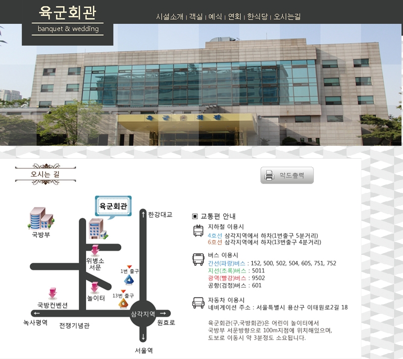 - 지하철 4호선 1번출구 5분거리. 6호선 삼각지역 13번출구 4분거리