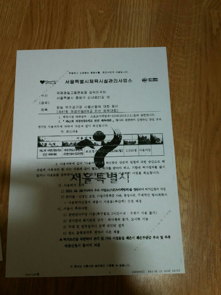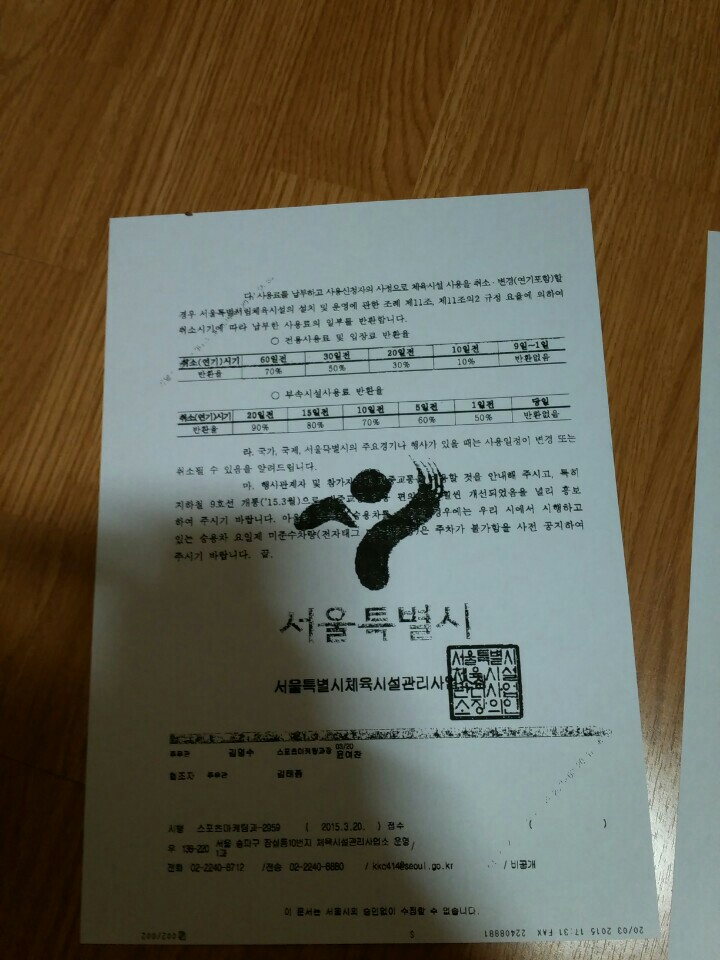 2015년 3월 20일(금) 서울시 시설관리소로부터