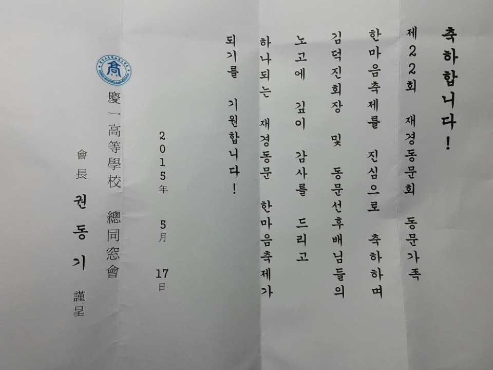 제22차 재경경일고동문가족한마음축제 찬조 현황